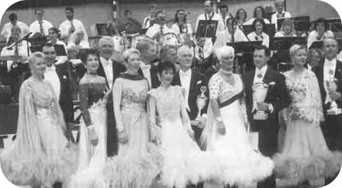 Steller Messecup oder Kaffeemaschine rettet Turnier Was hat eine Kaffeemaschine mit einem Tanzturnier zu tun? .. Manchmal sehr viel! Doch zunächst der Reihe nach: Pünktlich wurde er angeliefert! Er, das war unser transportabler Parkettfußboden. Zwei Tage vor Turnierbeginn verlegten die fleißigen Helfer der TSA in der Schulsporthalle das eigens aus Erkelenz angemietete Parkett. Drei Tonnen Holzfußboden galt es schließlich unter Anleitung eines extra angereisten Parkettmeisters fachgerecht auf den Hallenboden zu legen. Bereits nach einer Stunde Arbeit konnte ein jeder feststellen: "Der Boden macht sich in der Halle super!" Dank Unterstützung des Grünen Kreises und des Hausmeisters, die noch rasch für Tischdecken, Blumen und Fahnenschmuck sorgten, wirkte die große Sporthalle mit einem Mal gar nicht mehr wie eine nüchterne Sportarena, sondern strahlte richtig Festlichkeit aus und ließ jedermann neugierig werden auf das, was da wohl geschehen würde Am Sonnabend mittag war es schließIich soweit: Bereits 2 Stunden vor Turnierbeginn eilten die ersten Teilnehmerpaare, beladen mit schwerer Robe, durch das miese Wetter der Halle entgegen.                                     TSV-Vorsitzender Hans Lehmann eröffnet die Turniere um den                                                                     1. Steller Messecup Pünktlich um 14 Uhr starteten wir. Während in der Sektion Latein neun Paare in den Tänzen Samba, Cha-Cha, Rumba, Paso Doble und Jive ihr Können unter Beweis stellen wollten, gingen in der Standardklasse zehn Paare in den Disziplinen Langsamer Walzer, Tango, Wiener Walzer, Slow-Fox und Quickstep an den Start. Schnell kam Stimmung auf  und die ersten neugierigen Messebummler schauten herein, um sich an den einladenden Tischen niederzulassen und bei Kaffee und Kuchen das Turniergeschehen zu verfolgen. In der folgenden Zwischenrunde der Lateiner dann der große Schock! Stromausfall... Keine Musik... Kein Licht... Es ging einfach nichts mehr! Unser minutiös ausgearbeiteter Zeitplan drohte zu kippen. Hilfe ließ aber nicht lange auf sich warten: Der Hausmeister (er war an diesem Tag einfach überall) und Helfer der Freiwilligen Feuerwehr legten ein Kabel direkt aus dem Privathaus unseres Oberbrandmeisters bis auf die Bühne der Schulsporthalle. Doch wo blieb der Strom?   Keiner hatte einen Phasenprüfer (wieso auch?) dabei. Kurzentschlossen mußte statt dessen eine Kaffeemaschine (Kontrollämpchen) herhalten. So eilten dann 5 Männer mit der Kaffeemaschine unter dem Arm durch die Halle und kreisten den Fehler schnell ein. Geschafft!!! Nach 30 Minuten Zwangspause liefen die Turniere dann unter der souveränen Leitung von Margret Radwe wie am Schnürchen weiter. Um 17 Uhr konnten die ersten Sieger des Tages geehrt werden. In der Gruppe C Latein gewannen Bianca Knigge und Kai Wilhelm vom TSC Schwarz/Silber Bremen, in der Standard-Sektion hatten Mandy Krull und Stephan Bannier vom TSV Blau Gelb Schwerin die Nase vorn. Das größte Starterfeld erwartete uns in dem nun anschließenden Turnier der Senioren 2 Sonderklasse. 32(!) Paare dieser höchsten Turnierklasse rauschten in Stelle über das Parkett, um den begehrten Messecup zu erringen, darunter die amtierenden Deutschen Meister. Aufgelockert wurden die Vorrunden hierbei von den "Dancing Flies" des MTV Fliegenberg, die mit Hip-Hop zur Musik der Backstreet Boys den Zuschauern und Aktiven in der Pause kräftig einheizten. Im Rahmen des abendlichen Festballs, den wir zusammen mit dem TC ausrichteten, konnte dann ein jeder selber zu flotten Rhythmen des Swing Orchesters das Tanzbein schwingen. In den Tanzpausen wurden dann die Sieger des Sonderklassenturniers ermittelt. Den Messecup dieser Klasse konnten nach überzeugender Leistung die deutschen Meister Margrit und Frank Steier vom Alster Möwe Club Harnburg mit nach Hause nehmen. Der zweite Platz ging an das Vize-Meisterpaar Gerda und Wilhelm Dietz vom Grün Gold Club Bremen. Rang drei ertanzten sich Rainer und Eiko Tesch vom TC Rotherbaum. Die beiden, die mit ihrem Quickstep die Zuschauer förmlich von den Sitzen rissen, sind übrigens die Dritten der DM.                                            Die Endrundenpaare der Senioren II/ Sonderklasse.                                                                Die Sieger stehen rechts Einlagen, wie alte Tänze aus den zwanziger Jahren und Jazz- und Modern- Dance sorgten für weitere Höhepunkte an diesem Abend. Bis in die Nacht hinein schwoften die Zuschauer dann noch selbst. Es war einfach ein toller Tag Die Turniere um den I. Steller Messecup waren ein voller Erfolg. Erstmals konnten wir den Tanzsport vor "heimischem" Publikum zeigen. Dem TSV war es sogar ein Titelbild im TSV Journal wert. Ausgabe 62/ Dezember 1997 “Gewinnen den 1. Steller Messepokal: die Deutschen Meister Frank und Margit Steier”